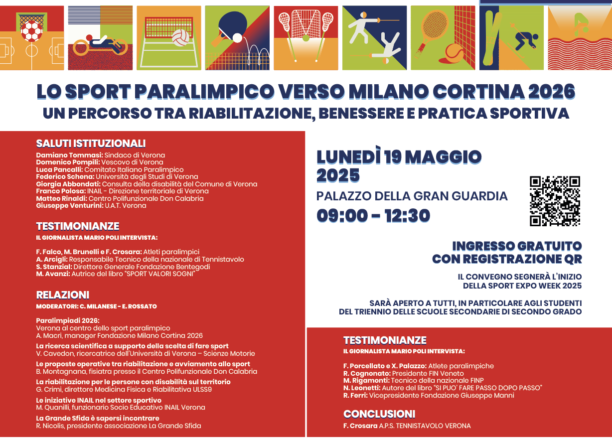 Sensibilizzare la cittadinanza e in particolare la popolazione studentesca sull’importanza dello sport per le persone con disabilità. Indicare quale percorso sanitario – sociale – educativo debba essere messo in campo per rendere concrete queste possibilità anche in relazione alla grande risonanza che lo sport Paralimpico avrà a Verona per i Giochi invernali del 2026.
